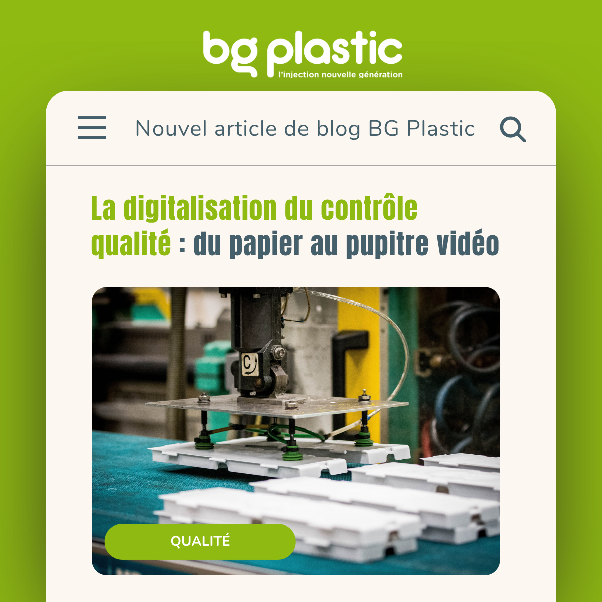 “Au-delà de l’outil technologique, c’est l’engagement de nos équipes vers l’excellence qui fait la différence. La digitalisation est un moyen pour valoriser leur savoir-faire et garantir à nos clients que chaque pièce sortant de nos presses a été contrôlée avec la plus grande rigueur.” Sébastien Bernard, Responsable Qualité chez BG Plastic